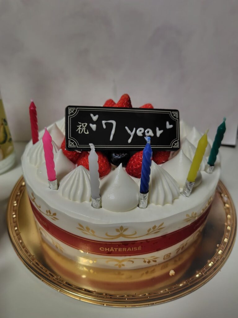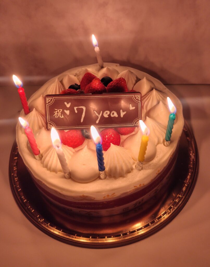 ろうそくを灯すだけで、ちょっと豪華な「7周年」のお祝いに。